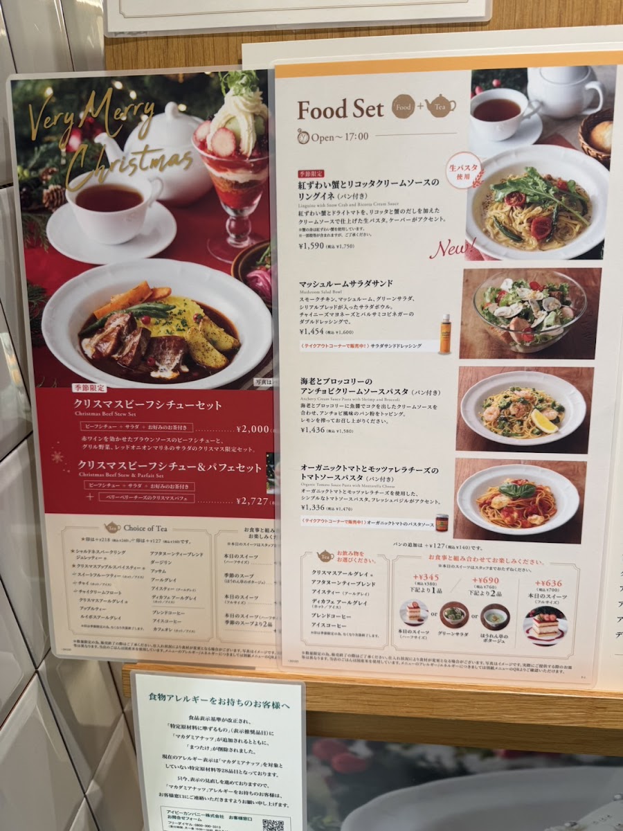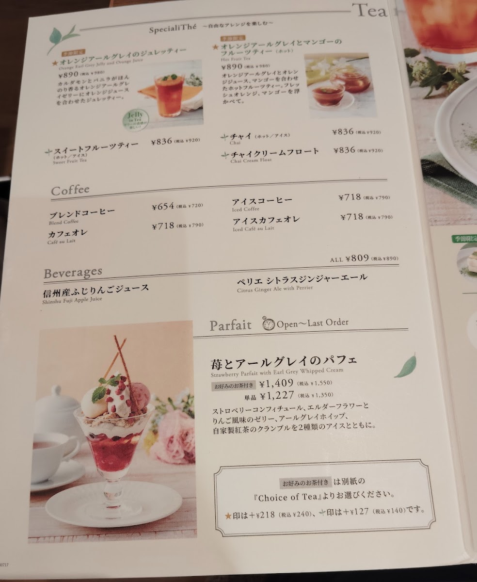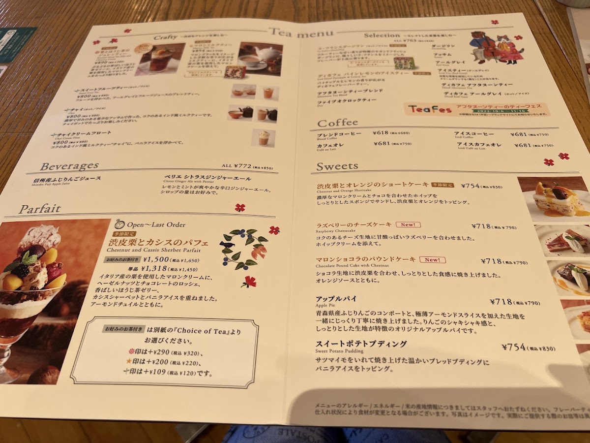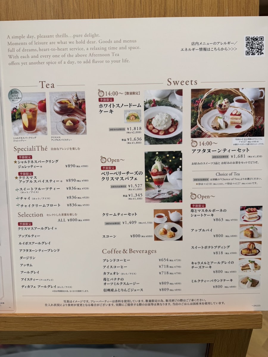 Afternoon Tea TEAROOM Sogo Yokohama Menu